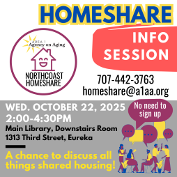 Come at 2:00 PM for a slideshow presentation on the free housemate matching services offered by Northcoast Homeshare.
