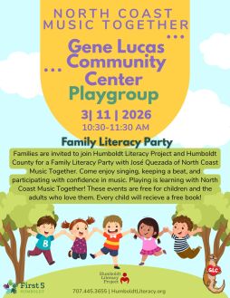 Families are invited to join Humboldt Literacy Project and Humboldt County for a Family Literacy Party library tour with José Quezada of North Coast Music Together. Come enjoy singing, keeping a beat, and participating with confidence in music. Playing is learning with North Coast Music Together! These events are free for children and the adults who love them.