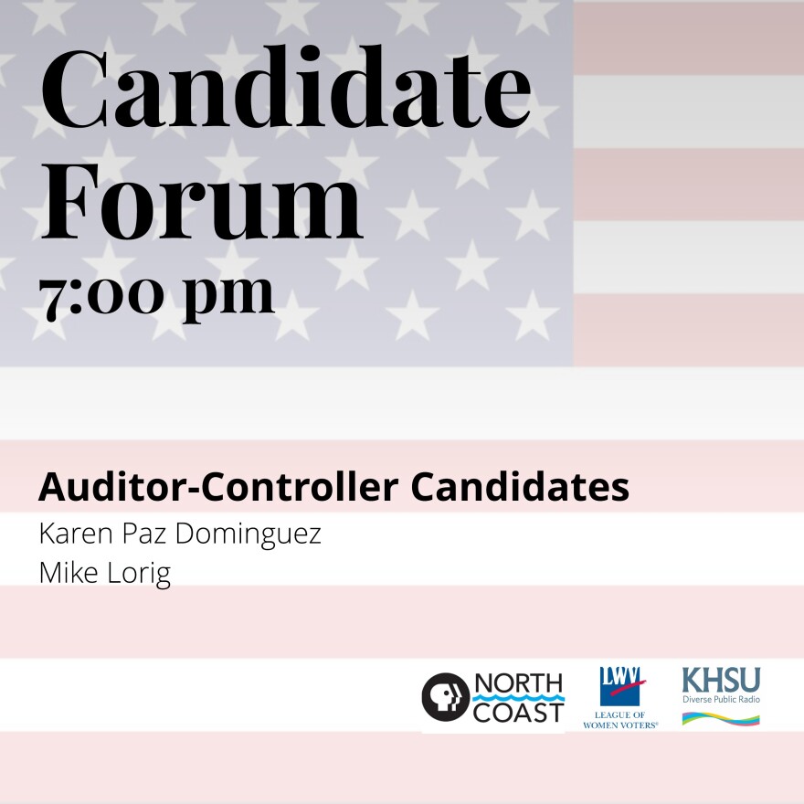 Tune in tonight at 7 pm to hear a debate between local Auditor-Controller candidates Karen Paz Dominguez and Mike Lorig. This will preempt regularly-schedule programming. The debate is produced by Humboldt County League of Women Voters.